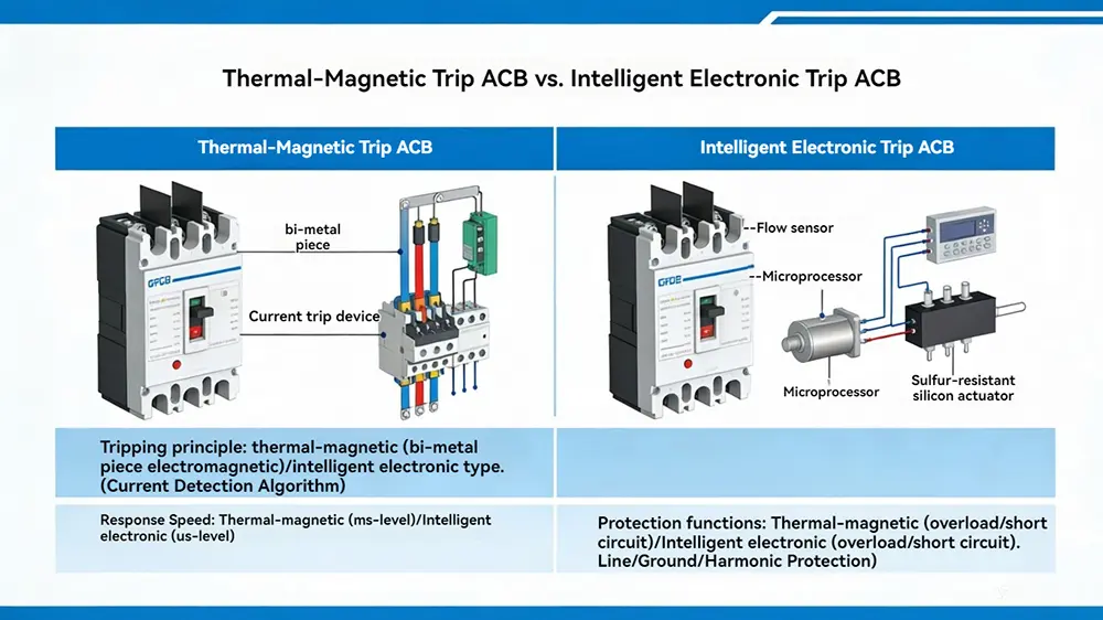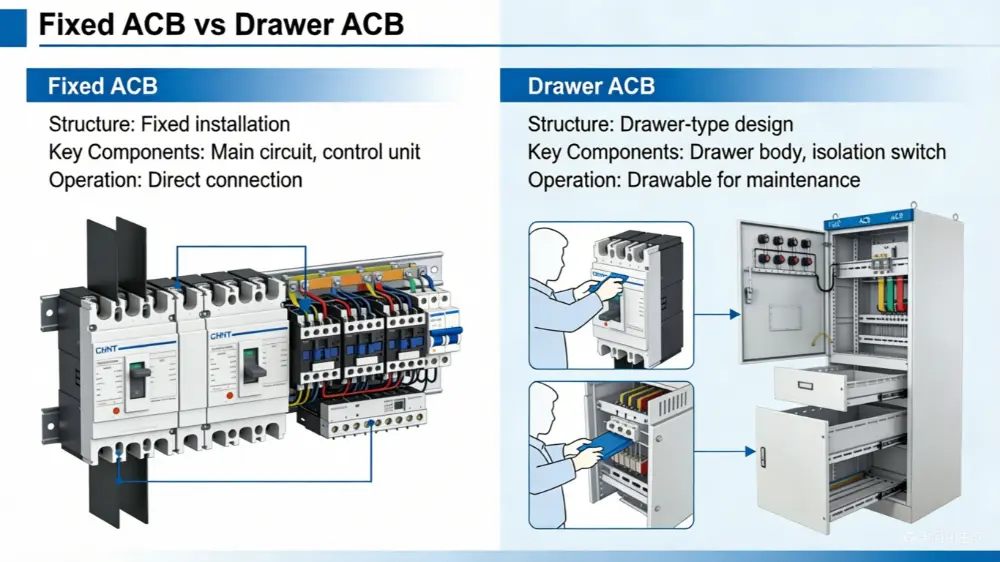 ເຄື່ອງຕັດວົງຈອນທາງອາກາດແມ່ນອຸປະກອນປ້ອງກັນໄຟຟ້າແຮງດັນຕໍ່າທີ່ໃຊ້ອາກາດເປັນສື່ດັບໄຟ. ມັນຮັບປະກັນການແຈກຢາຍພະລັງງານໄຟຟ້າຢ່າງປອດໄພໂດຍການຂັດຂວາງກະແສໄຟຟ້າອັດຕະໂນມັດແລະຮັກສາຄວາມຫມັ້ນຄົງຂອງລະບົບ. ໃນລະບົບໄຟຟ້າທີ່ທັນສະໄຫມ, ຫນ່ວຍງານ Air Circuit Breaker ເປັນສິ່ງຈໍາເປັນສໍາລັບການປົກປ້ອງອຸປະກອນແລະຮັບປະກັນການດໍາເນີນງານຢ່າງຕໍ່ເນື່ອງ.
